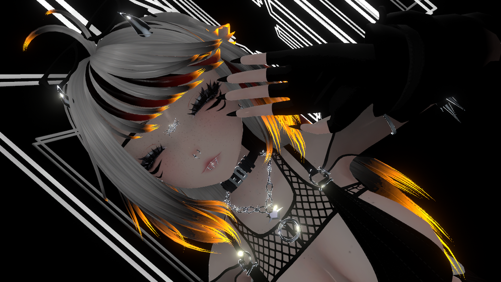 ღ Acc: sticky note texture, sticky note, glasses, paw fans, pasties, horns, garter, gloves