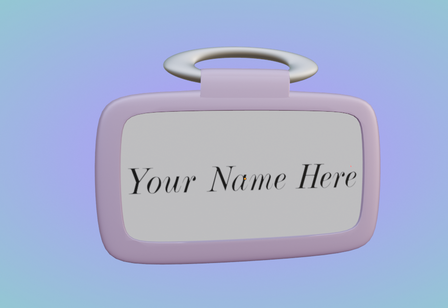 Hello! This is a nametag I made and you can customize the texture for the name area however you'd like!! You can use for events in VRC, pronouns, preferred names, etc <3 Might release a bundle soon!